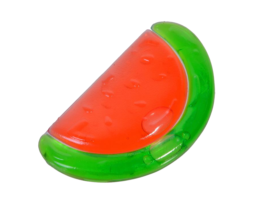 Jucarie dentitie cu apa, felie de pepene verde. Ajuta la calmarea durerii gingiilor in timpul iesiri primilor dintisori si la dezvoltarea abilitatilor motorii. Dimensiuni mici special create pentru bebelusi. Pentru un rezultat mai bun puneti jucaria in frigider timp de cateva minute.