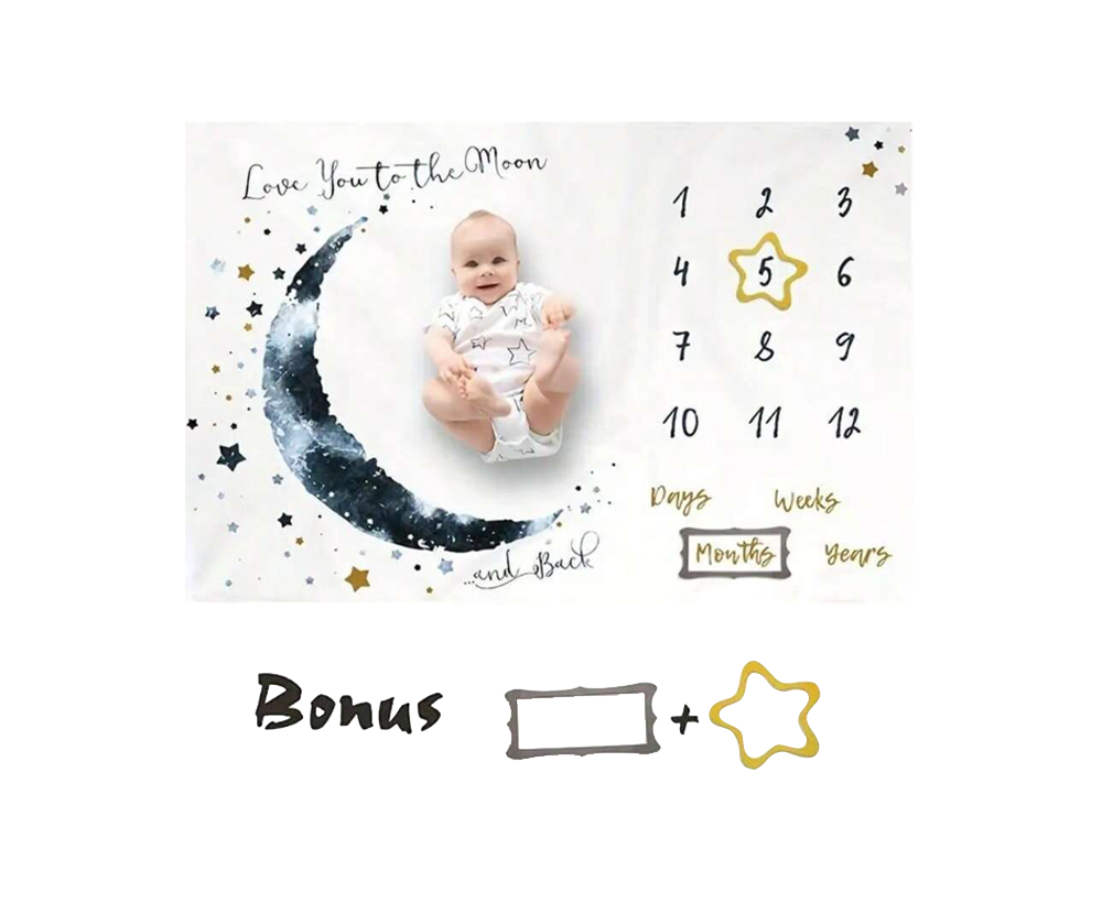 Paturica aniversara milestone baietel este un produs ideal pentru a marca fiecare luna de crestere a micutului tau. Aceasta paturica aniversara vine cu un design atractiv, avand o tema deosebita cu luna si stele. Este perfecta pentru a captura cele mai frumoase momente ale primului an de viata al baietelului tau.