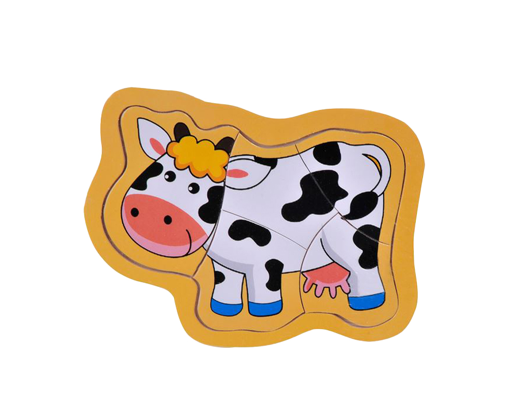 Puzzle din lemn cu 5 piese cu model vacuta.